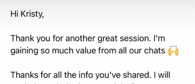 Before working with Kristy, I felt lost and unsure about my next career move. Through her coaching, I gained so much clarity on what truly matters to me and what I want to move tow